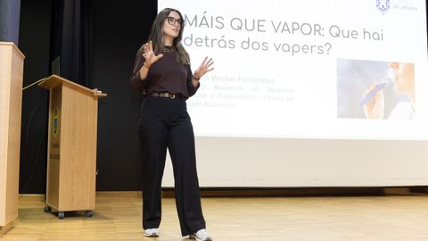 Natural de Arteixo y residente de primer año en medicina de familia en la Laracha, la doctora Andrea Vecino participó hace unos días en las jornadas de promoción de la salud impulsadas por el Ayuntamiento. Dio una charla sobre los riesgos asociados a el vapeo, cuestión que también analiza para La Voz: